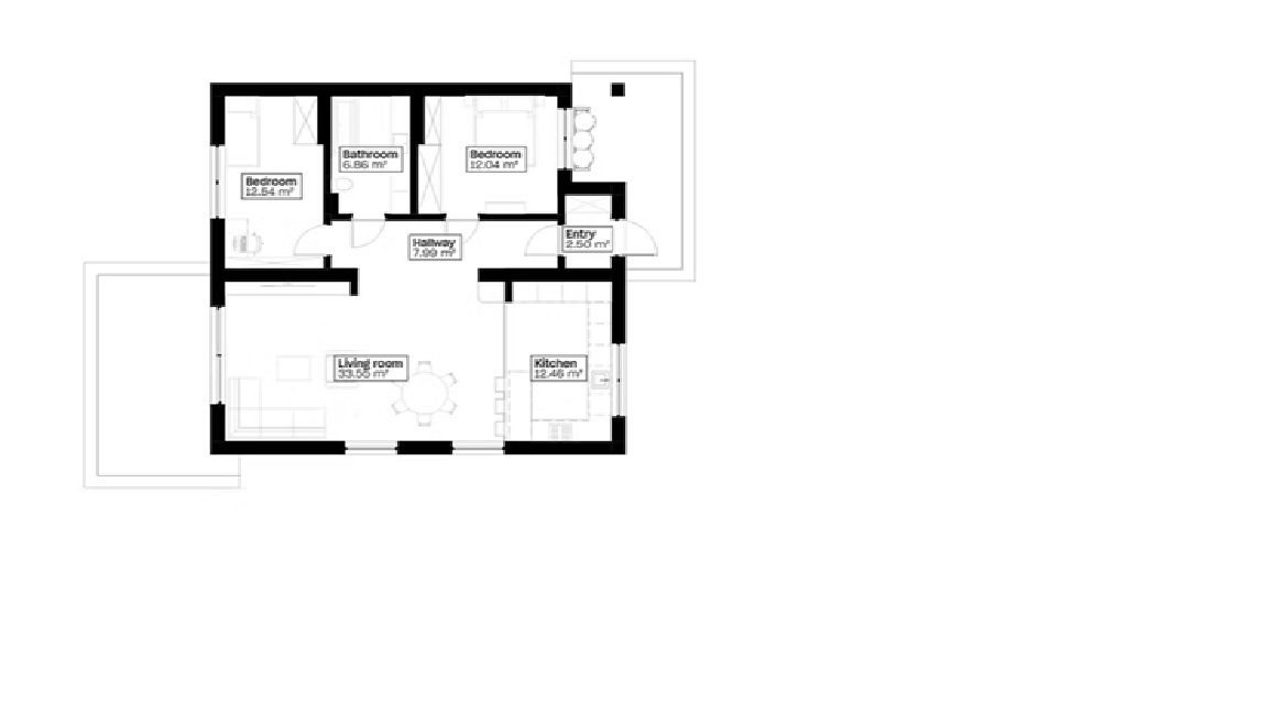 MODULAR-88 on kaasaegne ühekorruseline maja, kus 88 m² on nutikalt ja tõhusalt ära kasutatud. Avar, valgusküllane elutsoon ühendab elutoa, söögiala ja köögi ning eraldi tiivas asuvad kaks privaatset magamistuba.